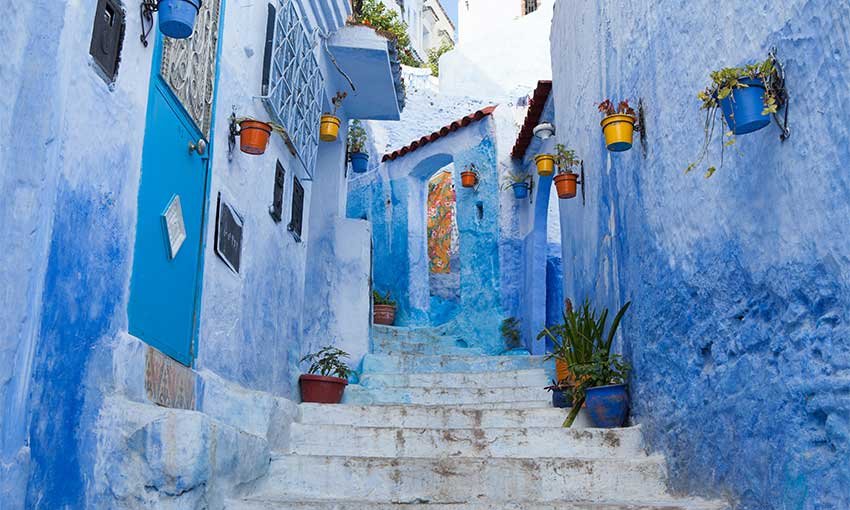 Begin your tour in Tangier (port, airport, or agreed-upon location). Drive to Tetouan, the "White Dove," and explore its Andalusian-influenced medina. Continue to Chefchaouen, the "Blue Pearl," and explore its charming blue-washed streets and the Uta el-Hammam square. Overnight in a riad in Chefchaouen.